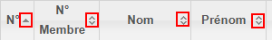 Cliquez sur l'icône de la colonne pour trier la liste sur cette colonne : le premier clic trie la colonne sur l'ordre ascendant, le deuxième sur le descendant.