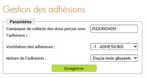 Facultativement, un code de ventilation comptable pourra aussi être créé pour consolider dans un compte analytique l'ensemble de la collecte liée aux adhésions : adhésions pures et dons éventuels les accompagnant.