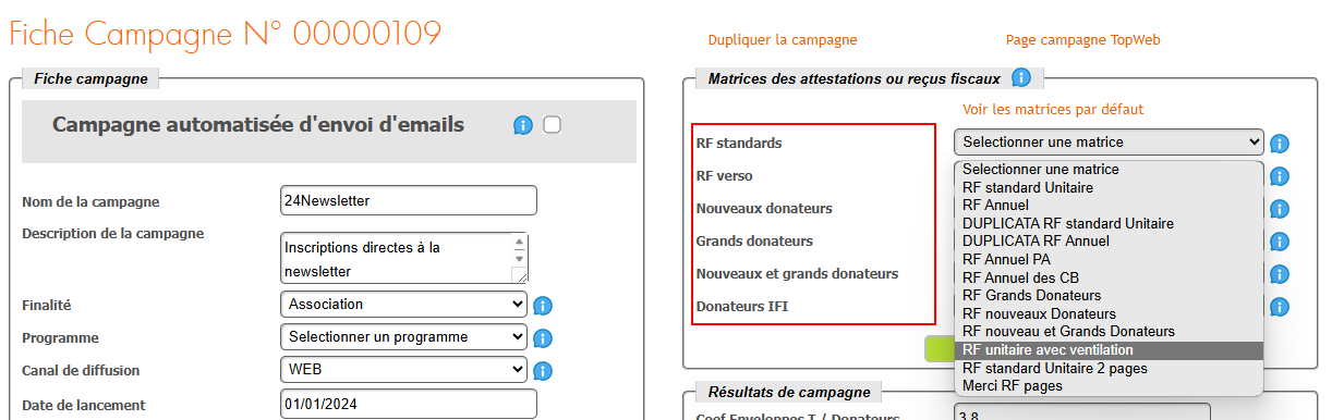 Cette distinction est possible dans TOPDON puisqu'à chaque campagne, il est possible d'affecter des reçus fiscaux différents selon si :