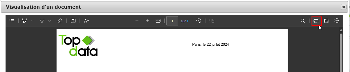 - Cliquez sur l'icône « Imprimante » pour éditer le courrier.